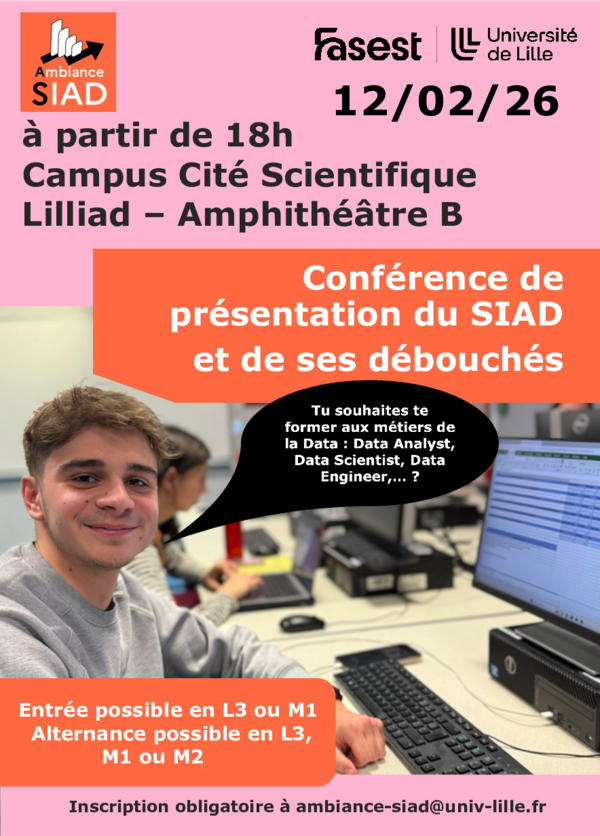 Présentation du SIAD et de ses débouchés, SH3 B16, Campus cité scientifique à Villeneuve d'Ascq